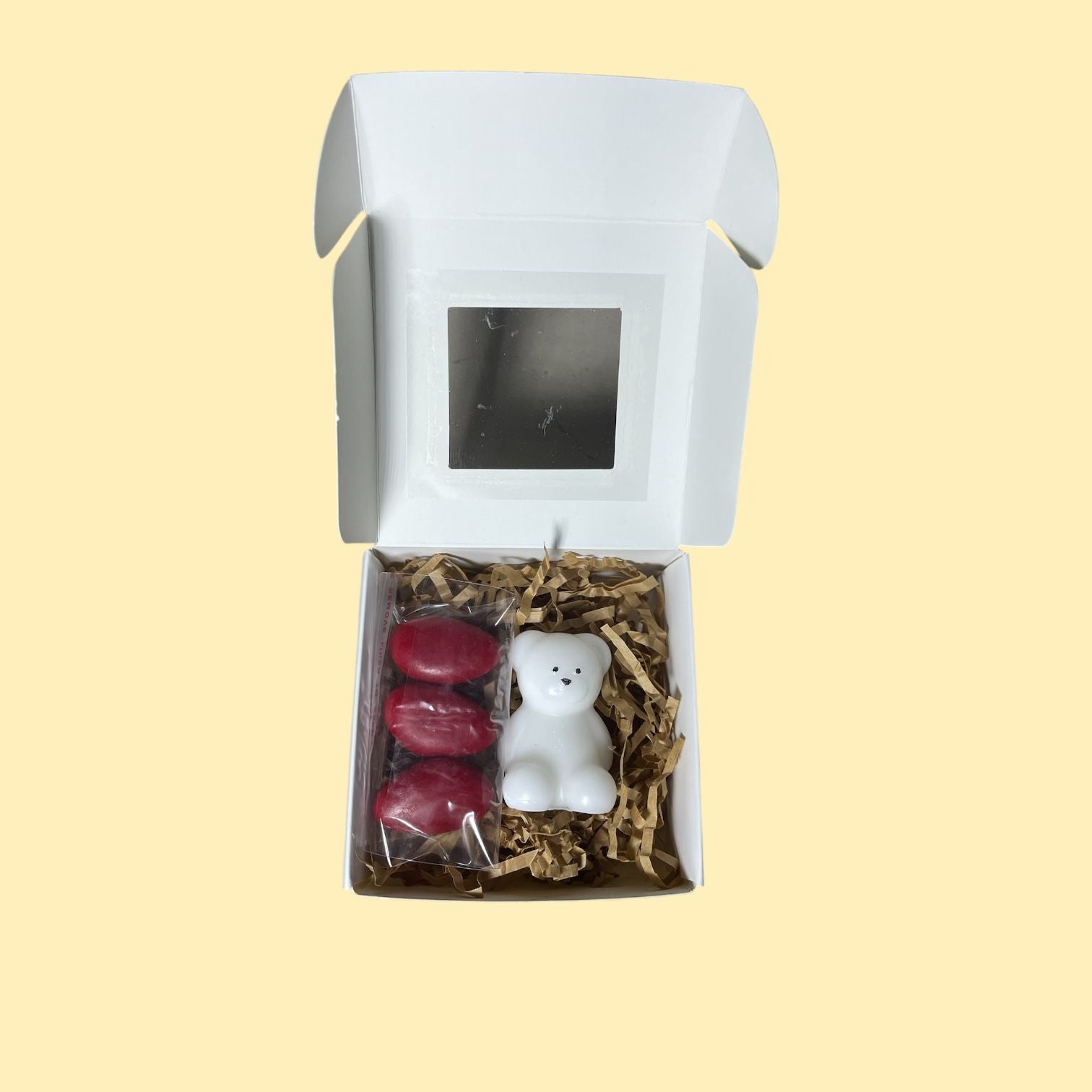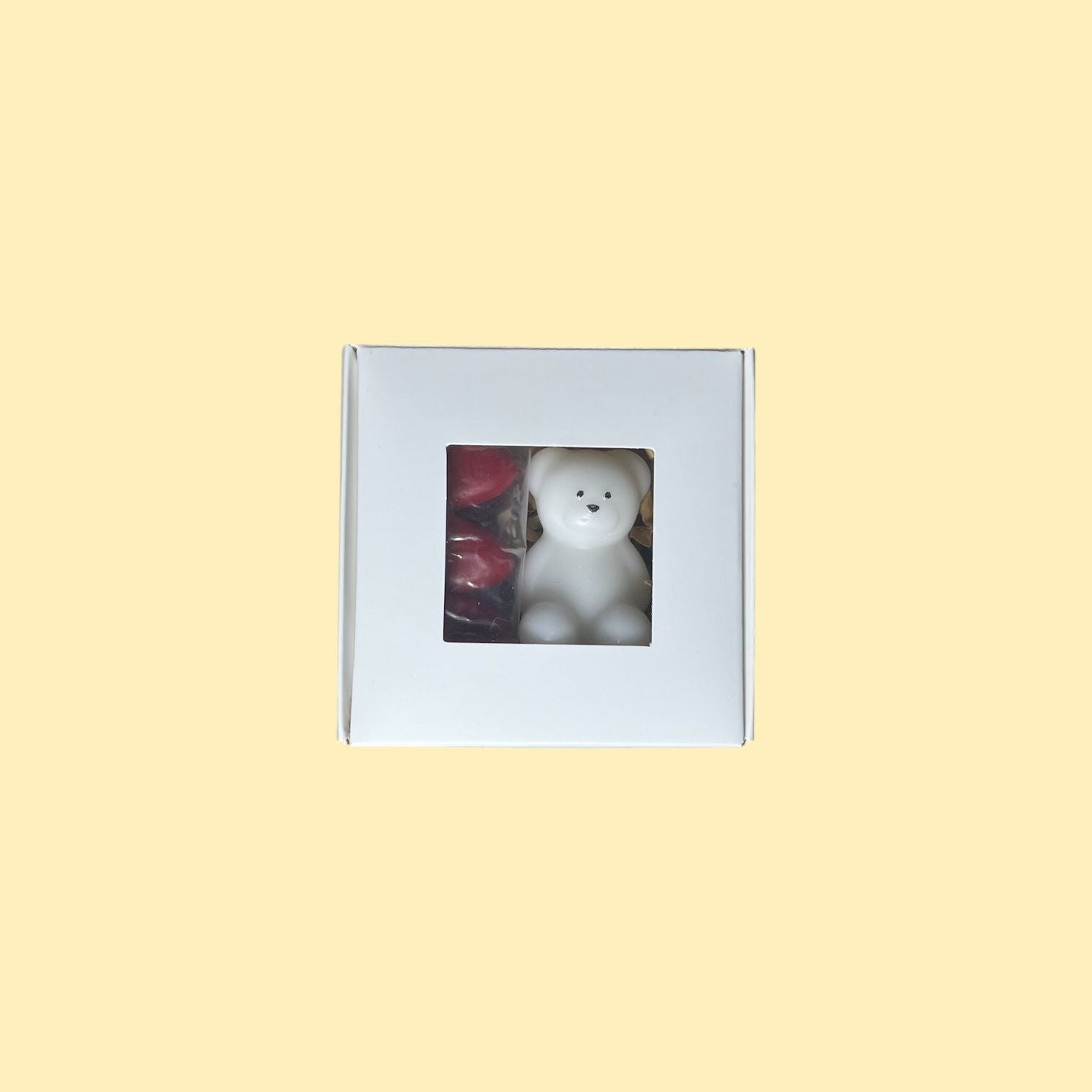 Scatola con orsetto in cera profumata + bustina con 3 confetti